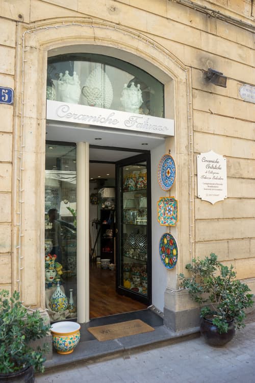 “Ceramiche Artistiche di Caltagirone”, Fatuzzo Salvatore, situata nel centro storico di Caltagirone, a due passi dalla Scalinata di Santa Maria del Monte una delle principali attrattive, la scalinata di 142 gradini decorata con magnifiche piastrelle variopinte di maiolica locale.